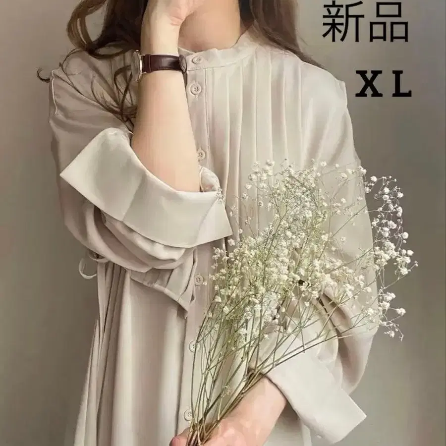 [ 새상품 ] JUNOAH 플리츠 밴드 카라 셔츠 원피스 베이지 XL