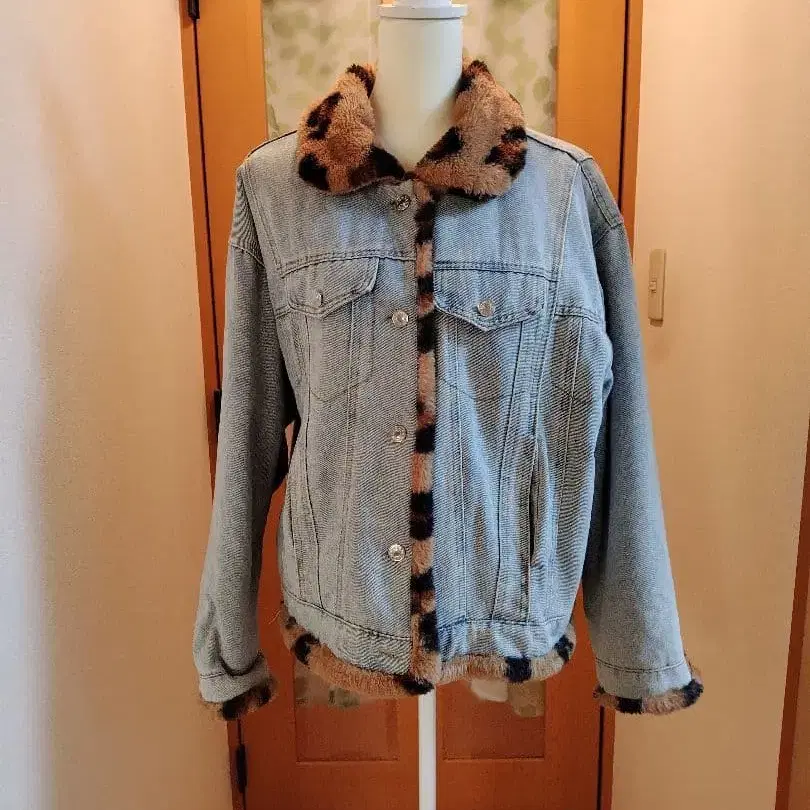 레오파드 퍼 달린 데님 자켓
