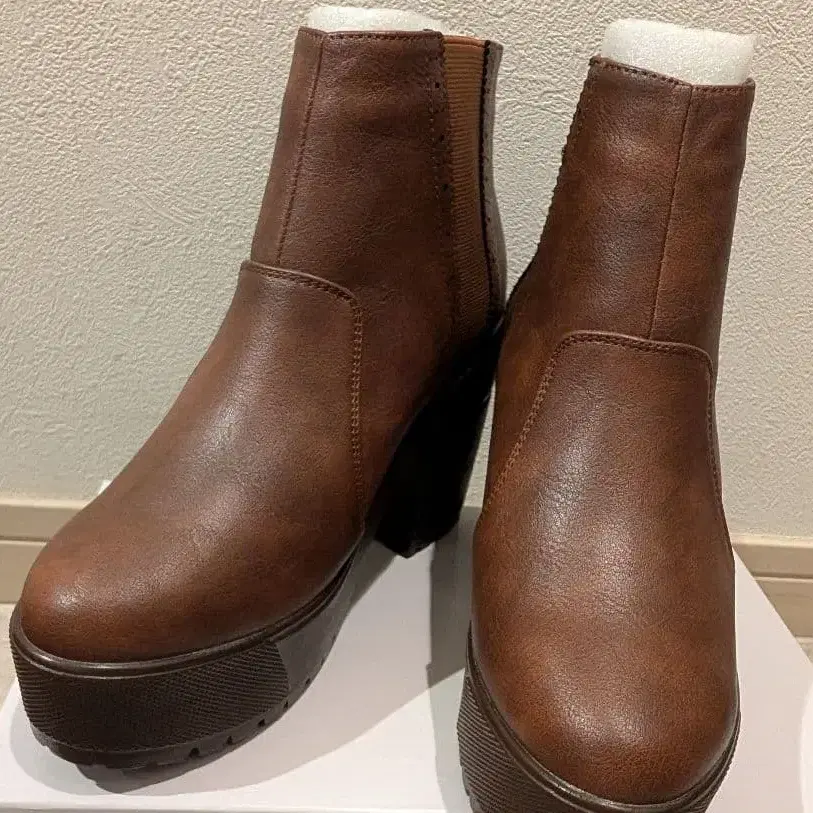 브라운 사이드 고어 통굽 부츠