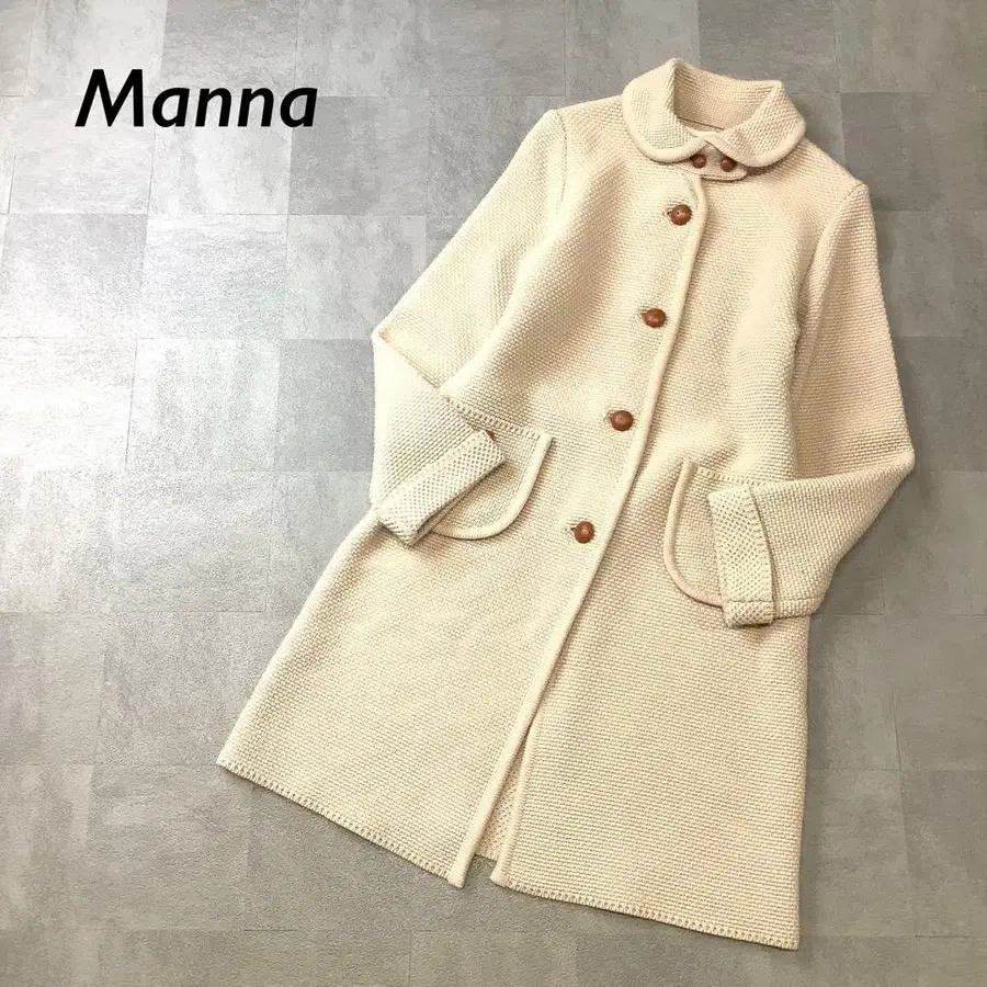 새상품급 Manna 둥근 카라 울 카노코 니트 코트 가죽 버튼 베이지