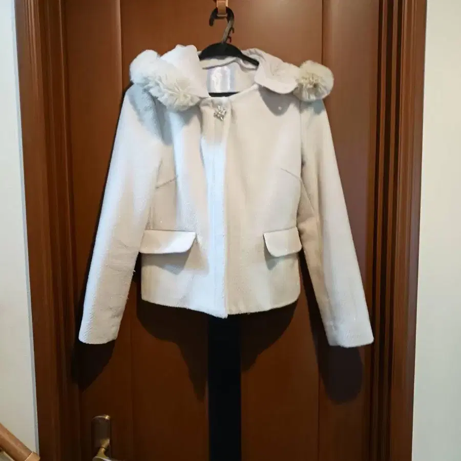 패턴 피오나 코트 화이트 퍼 더플 양산