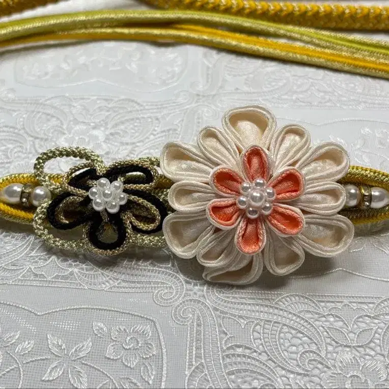 • [새상품] 순수 실크 오비 장식 천*허리띠 2세트 원형 나비 포멀