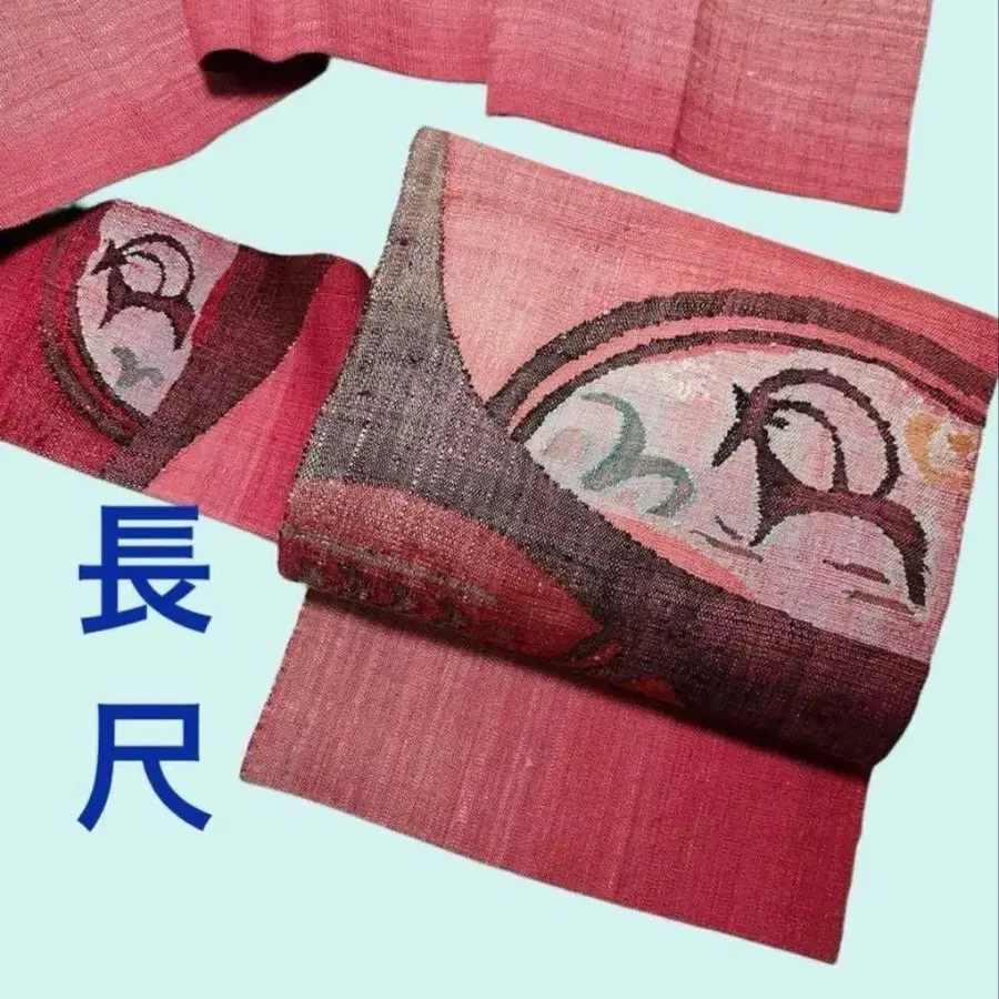 내추럴 나고야 오비 핑크색 긴 길이 순수 실크
