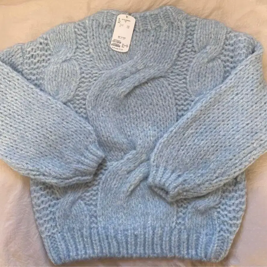 Chico 치코 빅 케이블 루즈 미니 니트 원피스 라이트 블루