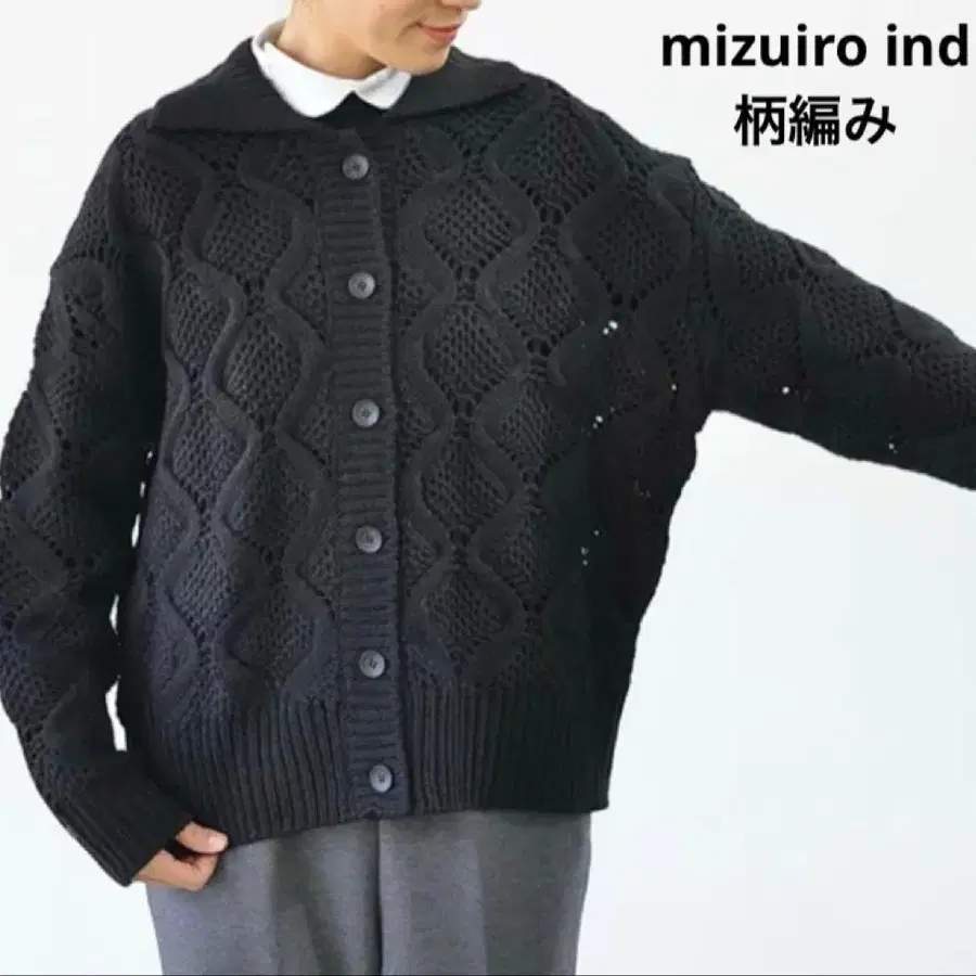 새상품급 mizuiro ind 로게이지 패턴 니트 가디건 블랙