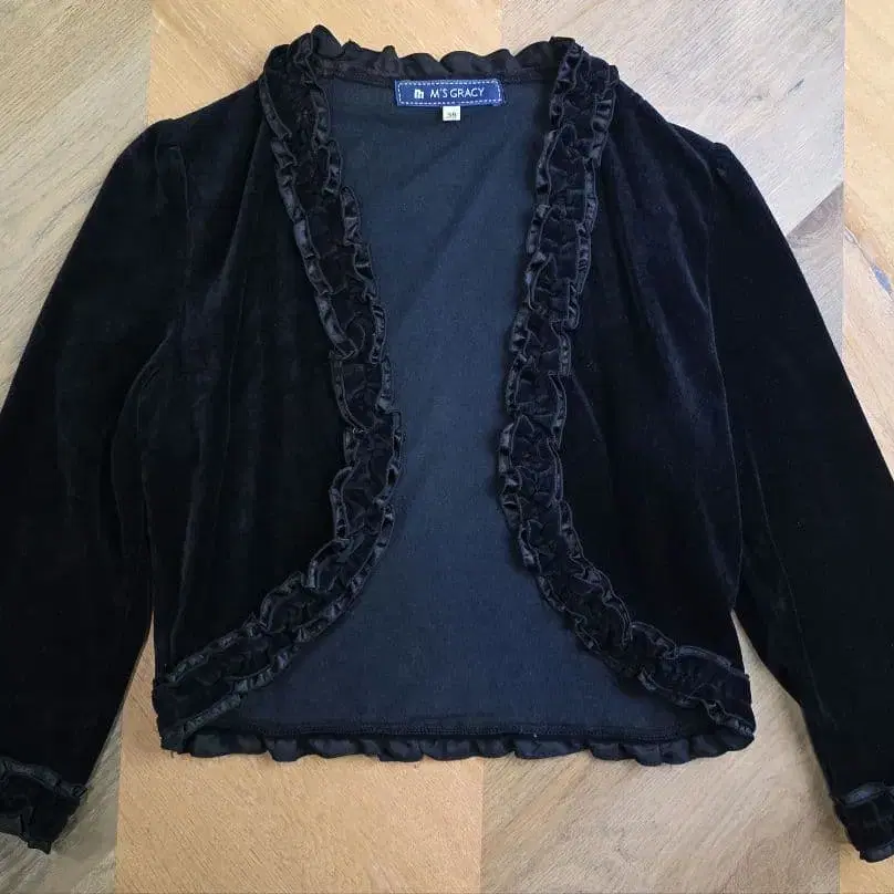 M'S GRACY 블랙 프릴 가디건 38 y42