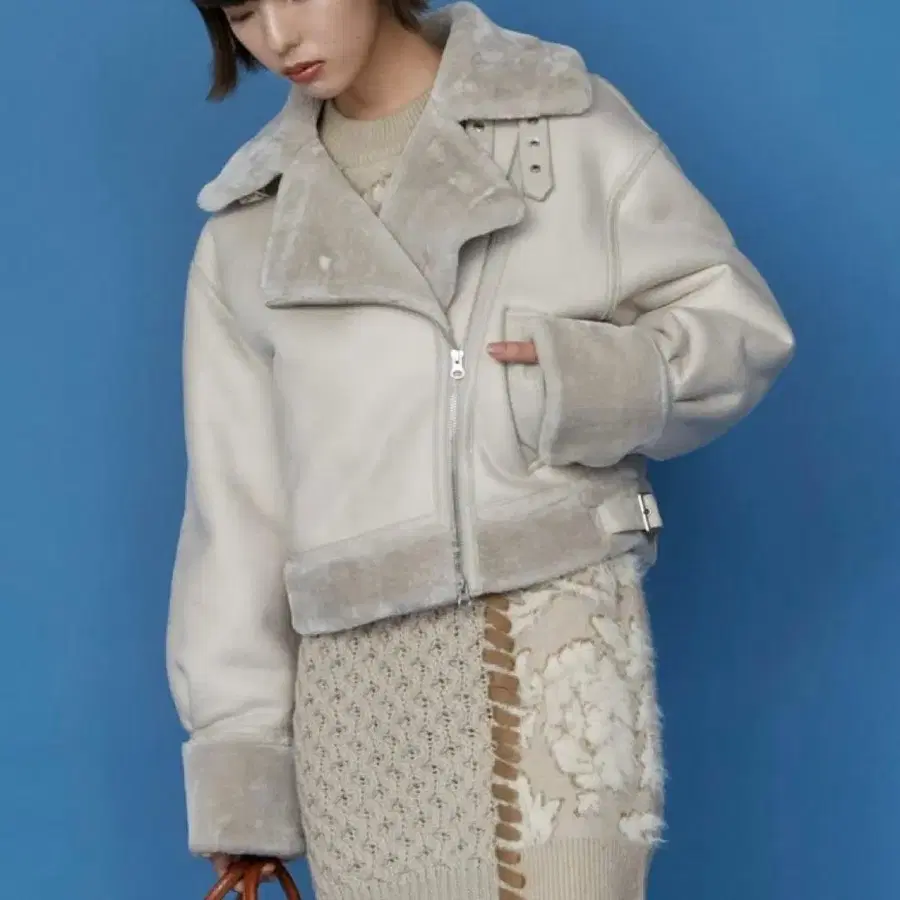 MURUA 숏 에어리 페이크 무스탕 자켓 라이더스 코트