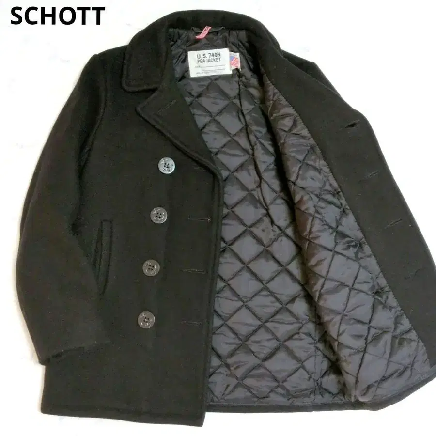 샷 P코트 퀼팅 울 블랙 사이즈 18 M 상당 USA제