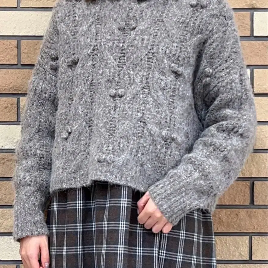 [ 택 포함 새상품 ] 사만사 모스모스 폼폼 포함 케이블 니트 그레이