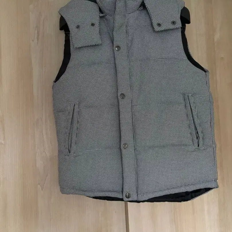 컴시즘 하운드투스 패턴 후드 부착 다운 베스트