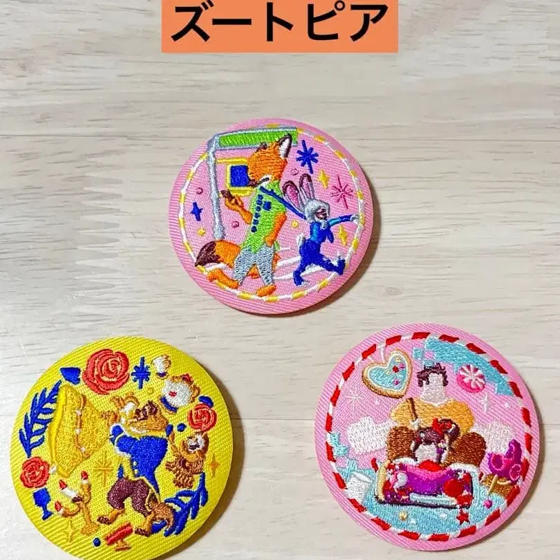 디즈니 캐릭터 자수 캔뱃지 주토피아 슈가러쉬 미녀와 야수
