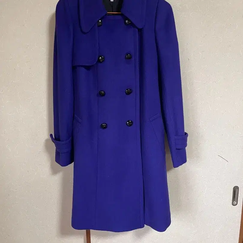 SONIA RYKIEL 보라색 더블 브레스트 트렌치 울 코트