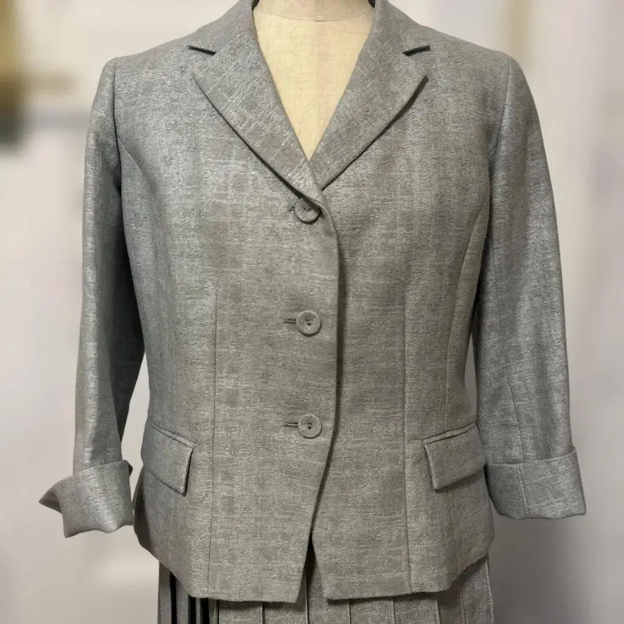 레킵 아이스 블루 그레이 자켓 플리츠 스커트 세트