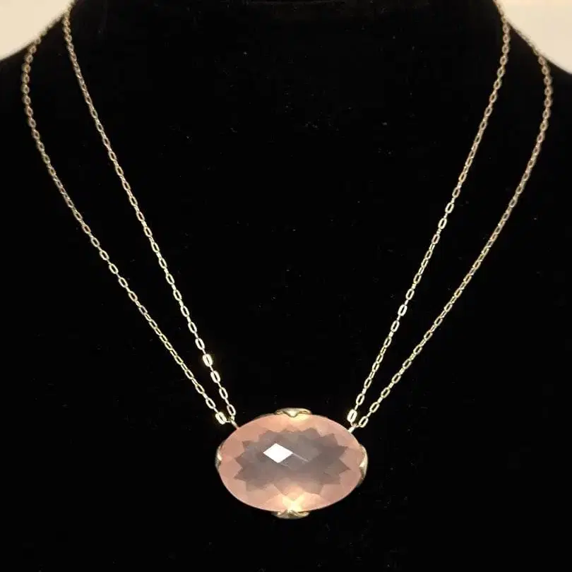 빈티지 로즈쿼츠 925 스털링 실버 목걸이