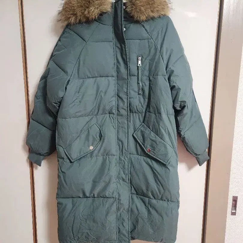 그린 퍼(fur) 부착 롱 패딩 자켓