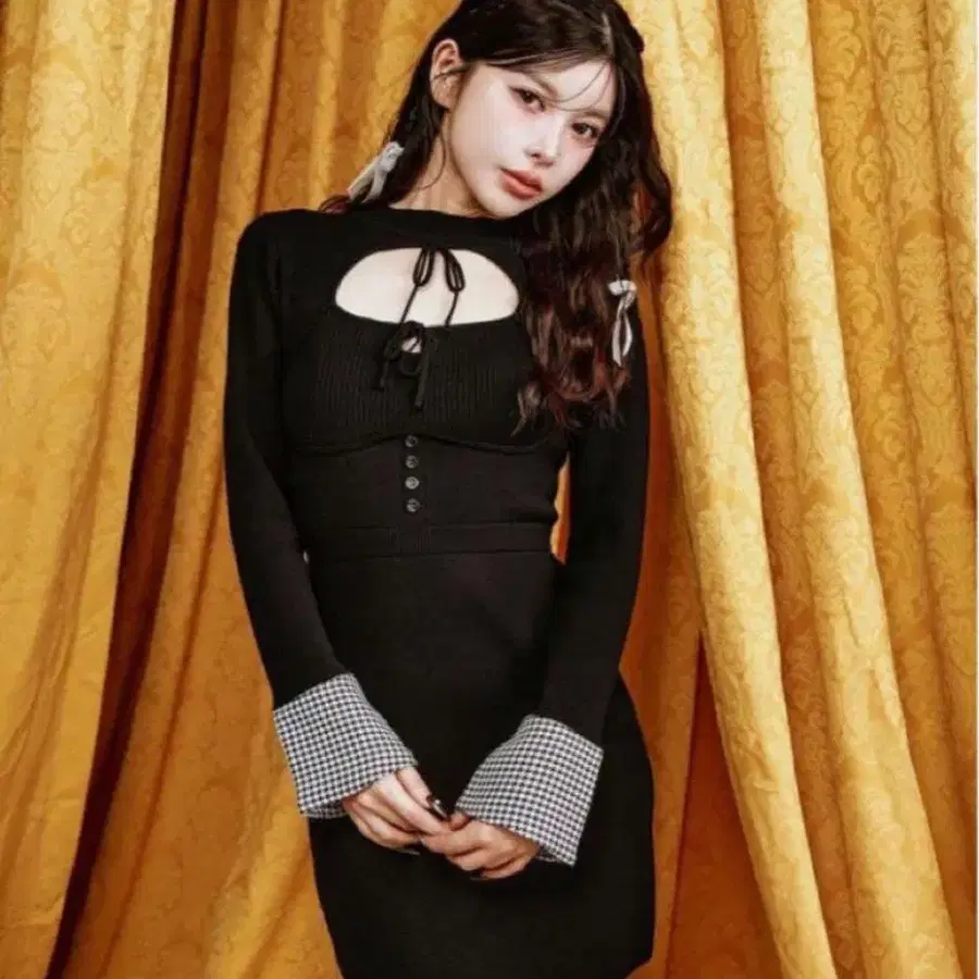 다리치 프론트 오픈 니트 미니 원피스 Darich