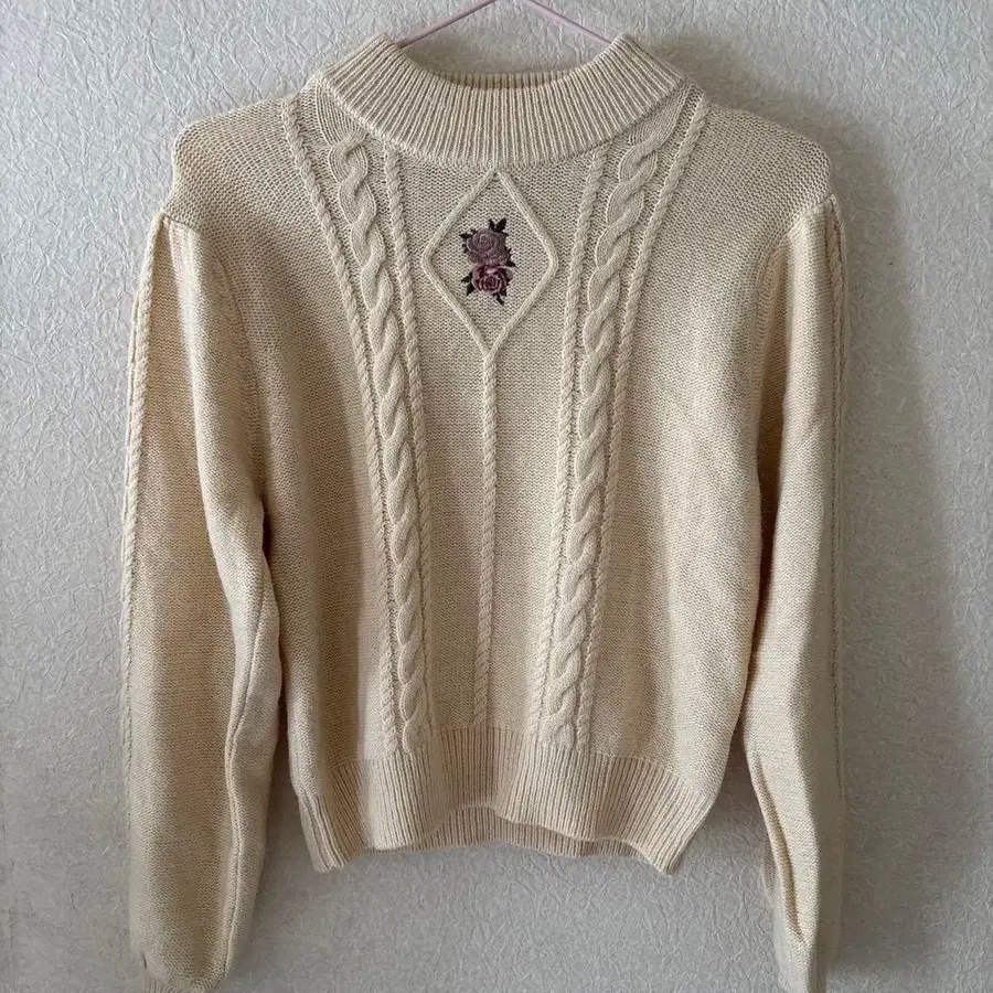 아이보리 케이블 짜임 니트 스웨터