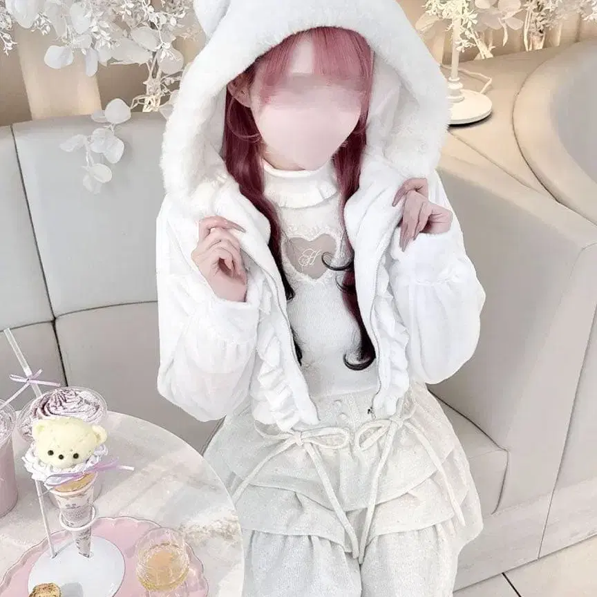 미셸 마카롱 michell macaron 비쥬 달린 복슬복슬 후드티