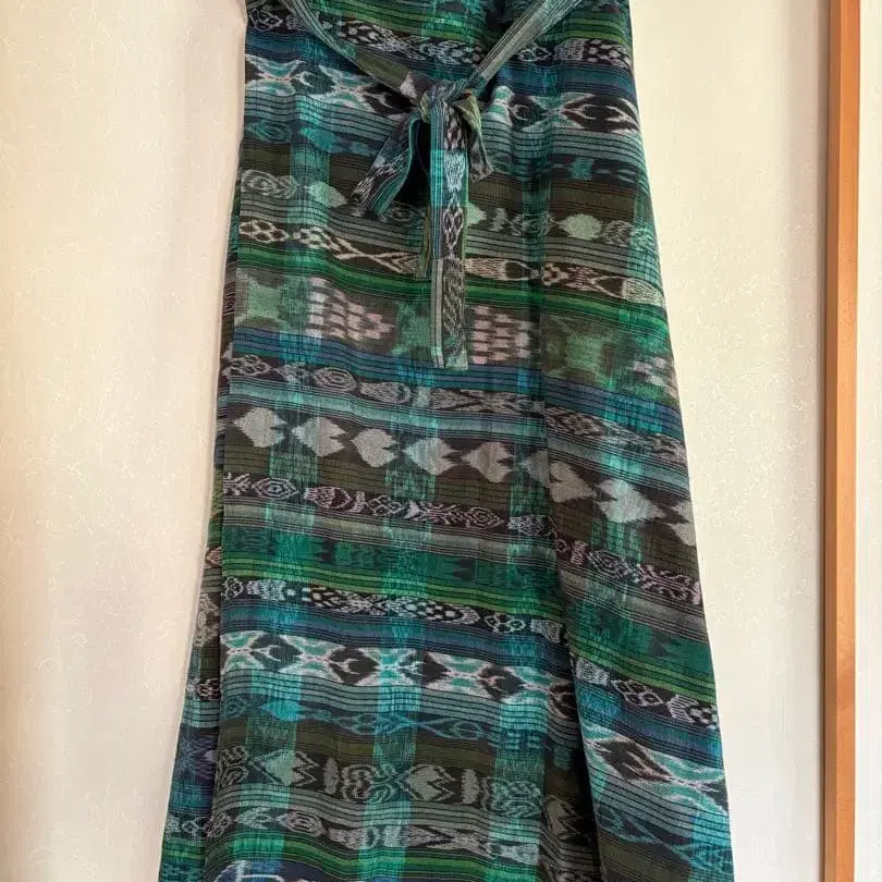 ILOITOO 그린 계열 기하학 패턴 롱 랩 스커트