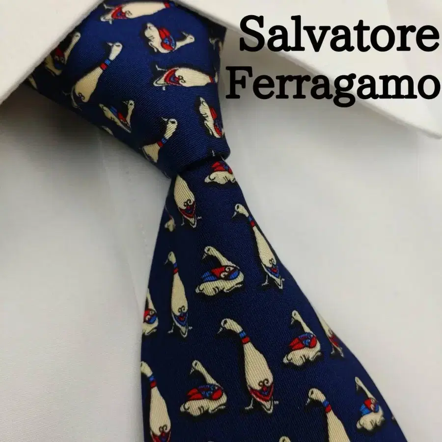 살바토레 페라가모 고급 실크 넥타이 올 패턴 ( 오리 )