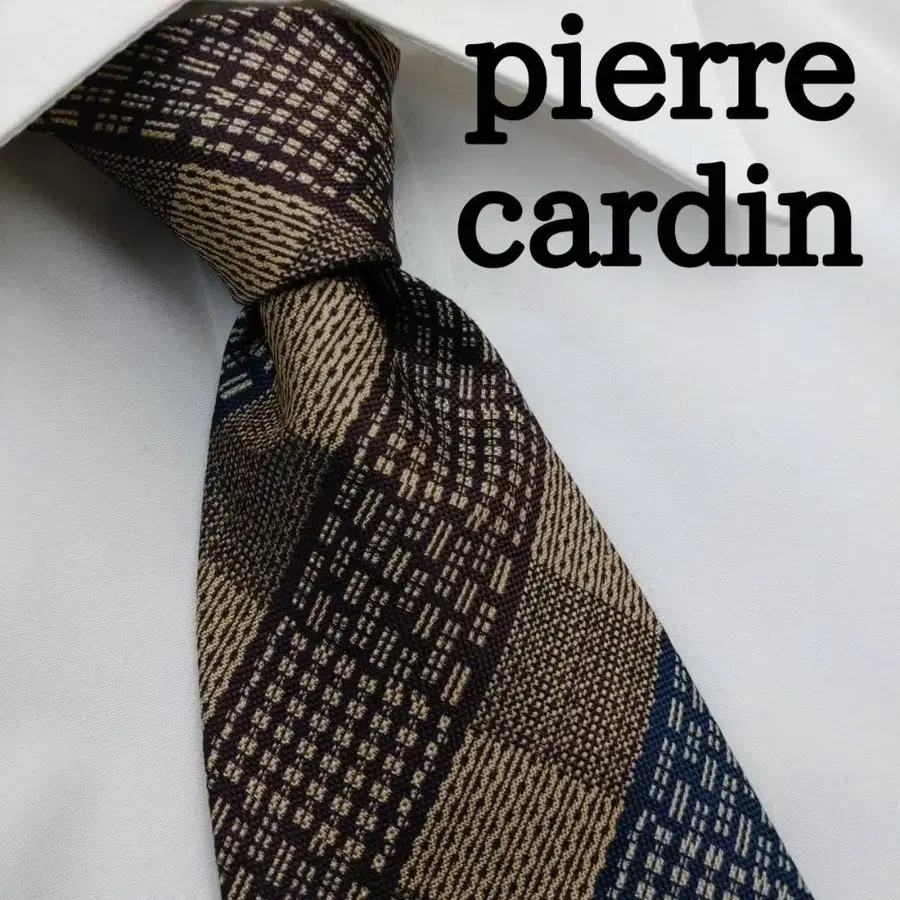 피에르 가르뎅 고급 실크 넥타이 체크 무늬 브라운