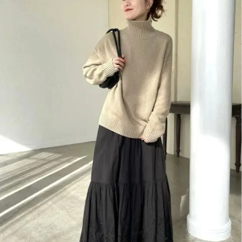 스픽앤스팬 백 슬릿 터틀넥 니트 베이지 [ 새상품급 ]