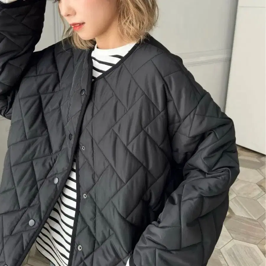 moment+ 퀼팅 노카라 코트 퀼팅 자켓 블랙