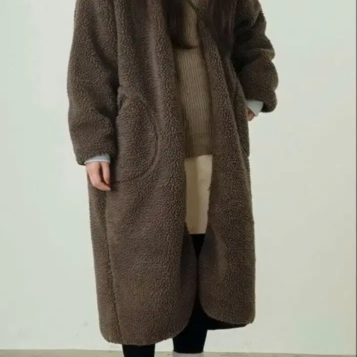 이짜카매니아 보아 롱 코트 모카 브라운 플리스