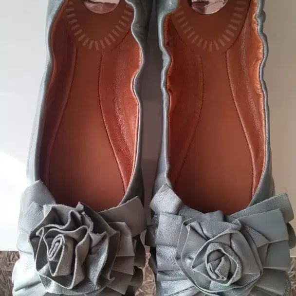 라스(ras) 신발 그레이 플랫슈즈 꽃 모티브