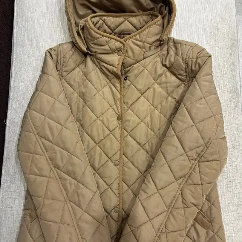 베이지 퀼팅 자켓 후드 부착 빔즈하트