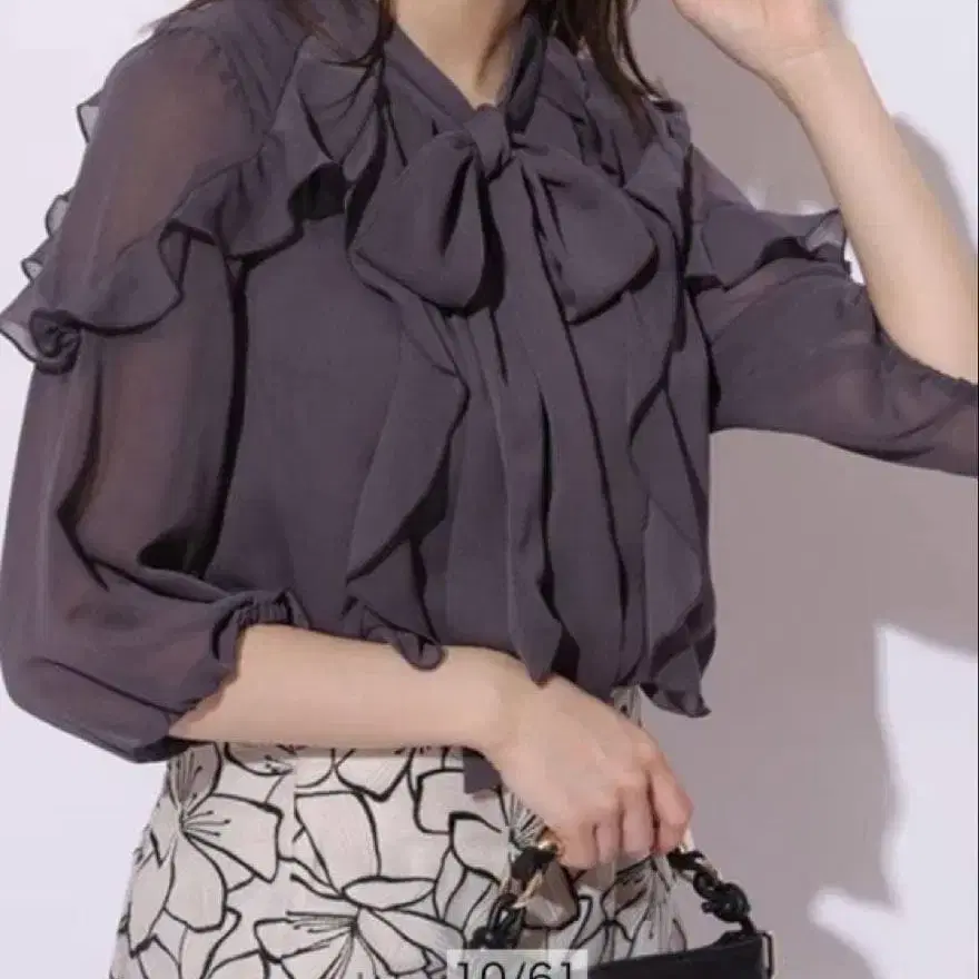 Mystrada 리본 타이 프릴 블라우스 베이지