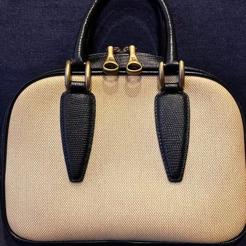 베이지 부분은 캔버스 소재, 블랙 부분은 리자드 엠보 가공으로, 전체적으로 코팅되어 있어 얼룩이 잘 묻지 않는 소재입니다.