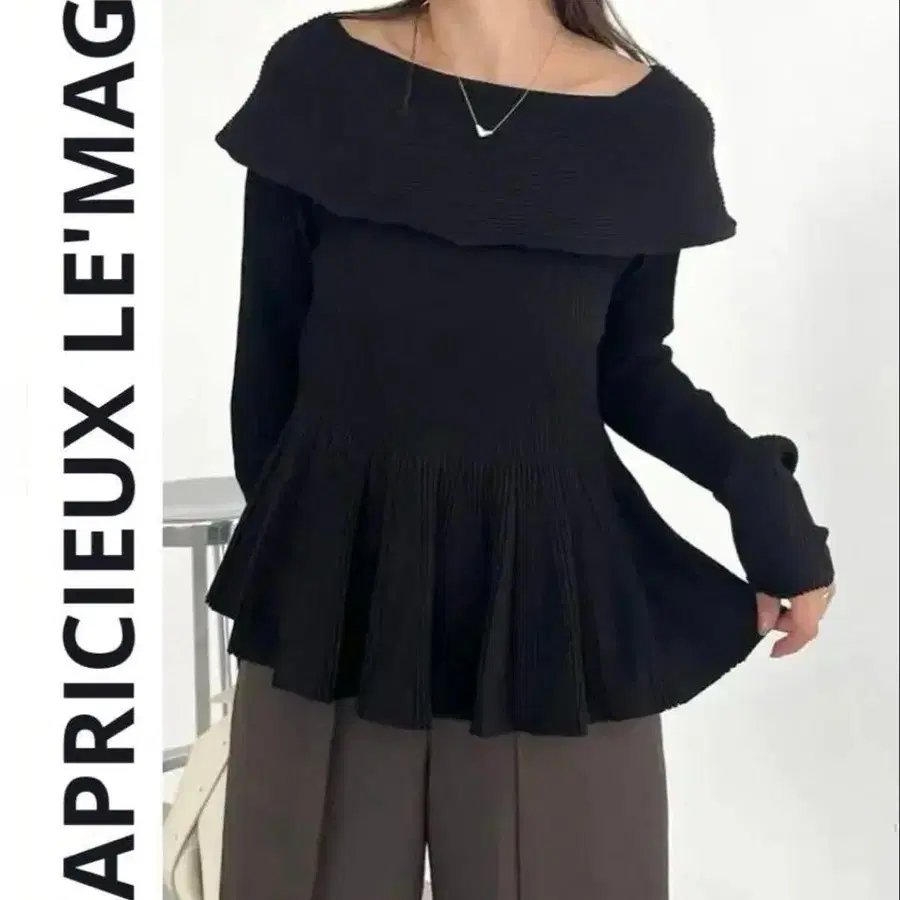 새상품 CAPRICIEUX LE'MAGE 플레어 보트넥 니트 블랙