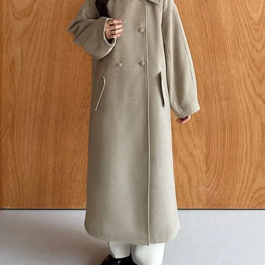 callautia 스텐 칼라 롱 코트 그레이쉬 베이지 M