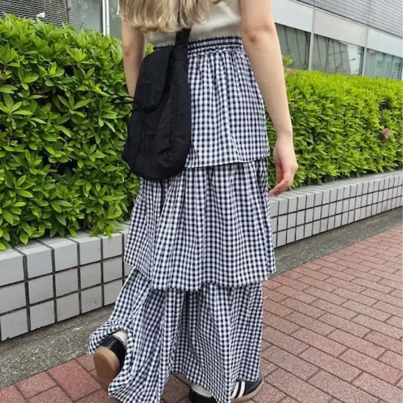 새상품 WEGO 깅엄 티어드 롱 스커트