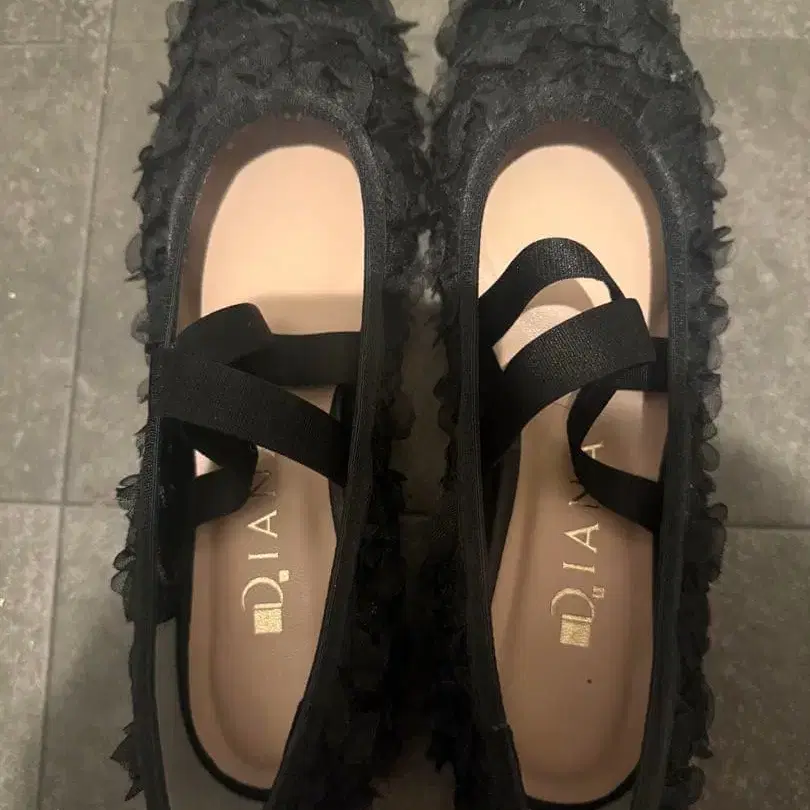 프릴 장식 블랙 발레 슈즈 23cm 다이애나