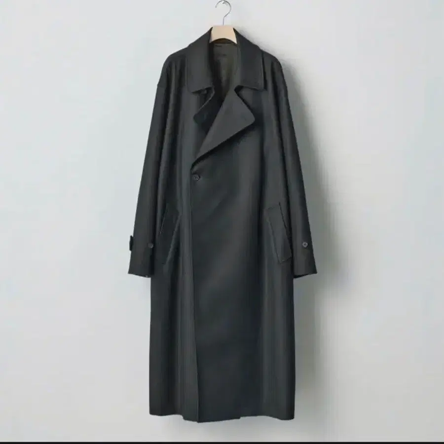 super 120's 원료의 고급 2/90 빗질한 털에서 오는 유연함과, 마무리 단계에서 보풀을 확실히 억제하여 고급스러운 광택감이 있는 표정이 특징인 이중직 멜톤을 사용한 더블 브레스티드 코트입니다.