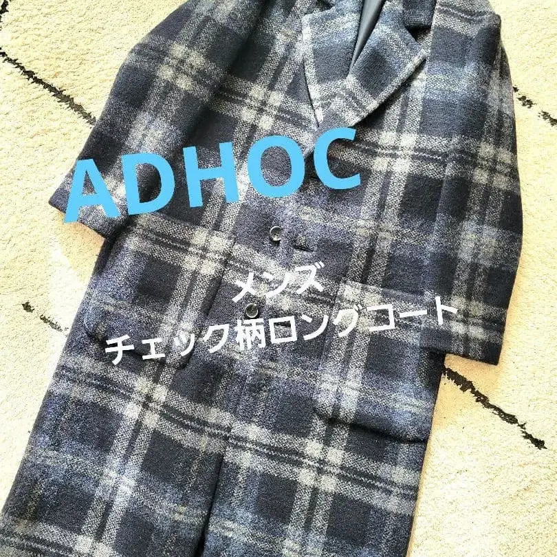 ADHOC 울 롱 코트 체크 무늬 남성용