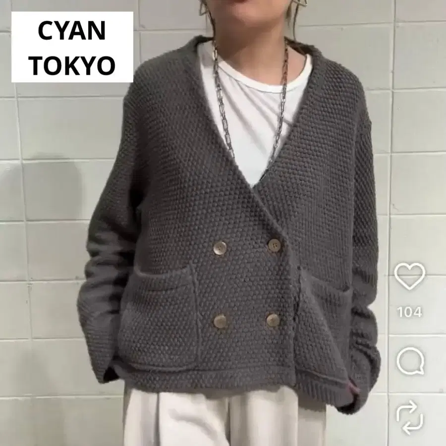 CYAN TOKYO 니트 라이크 와플 올 레이스 블루종 그레이