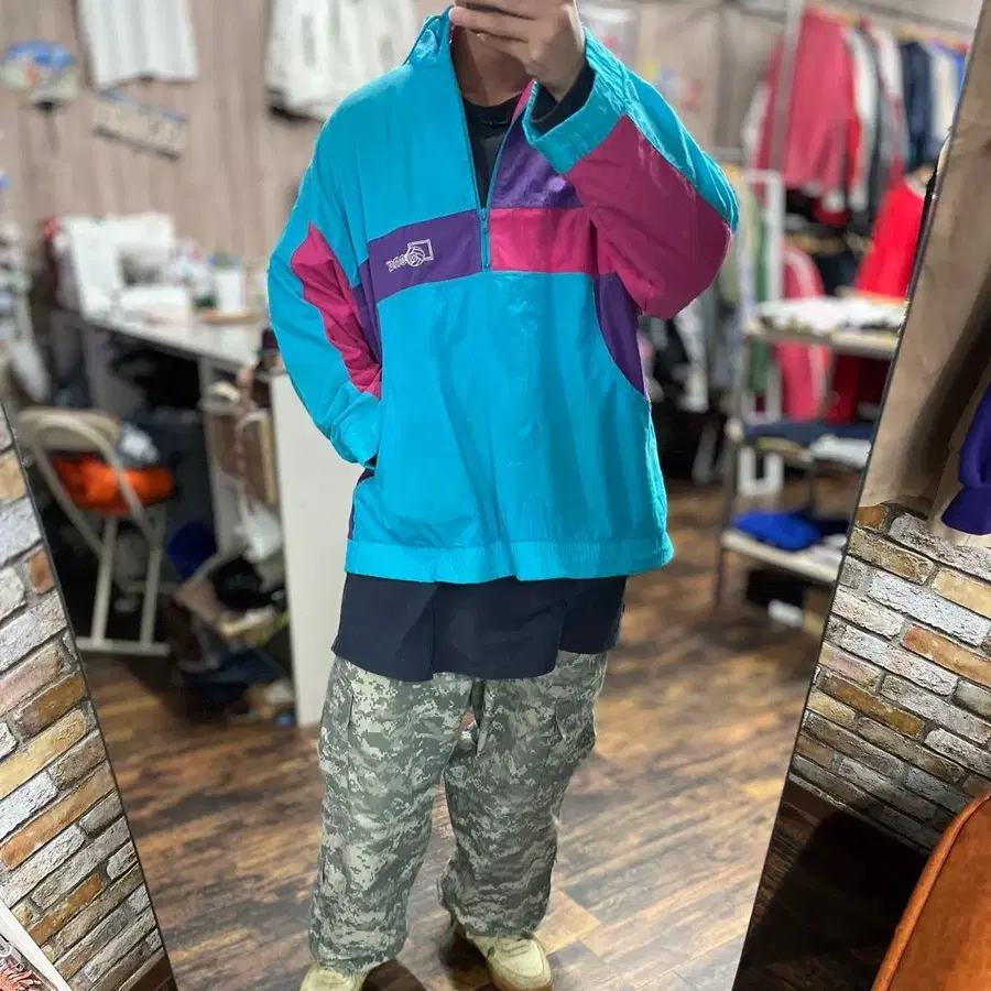 arena 80s 구제 의류 아노락 L 나일론 자켓 파랑 보라색 핑크