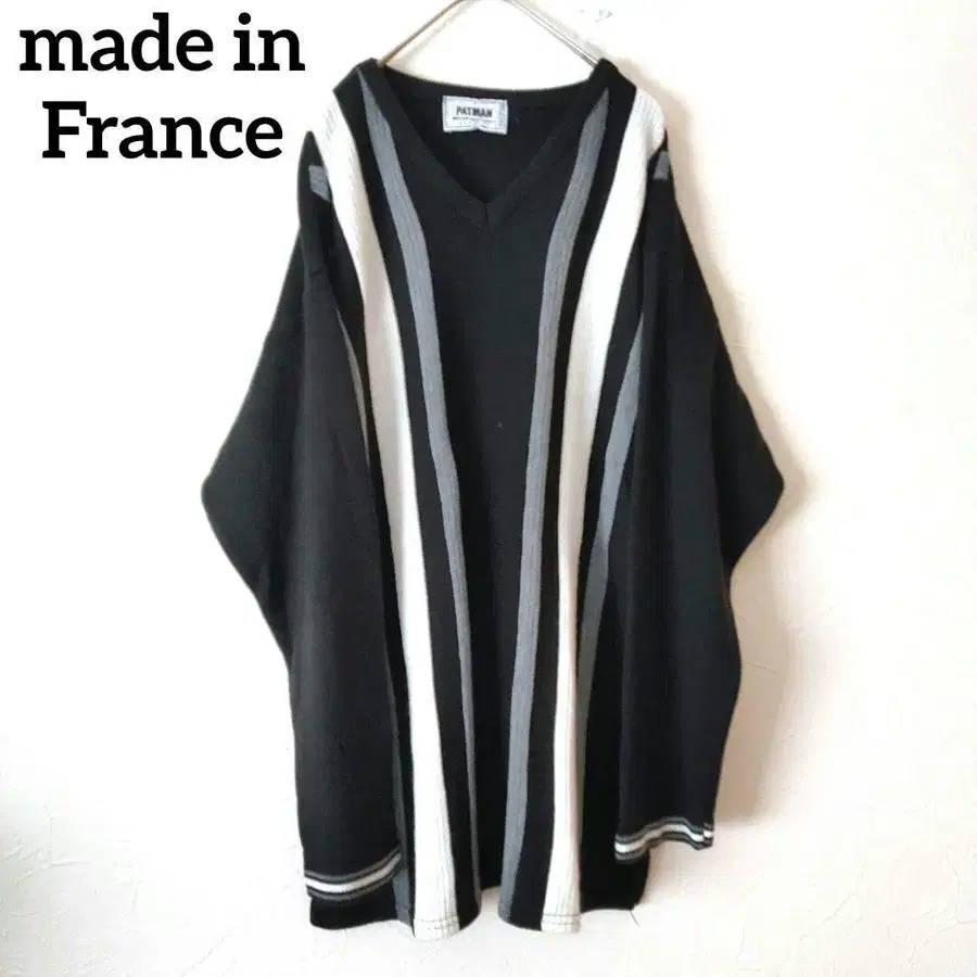 프랑스제 PATMAN V넥 스트라이프 니트 스웨터