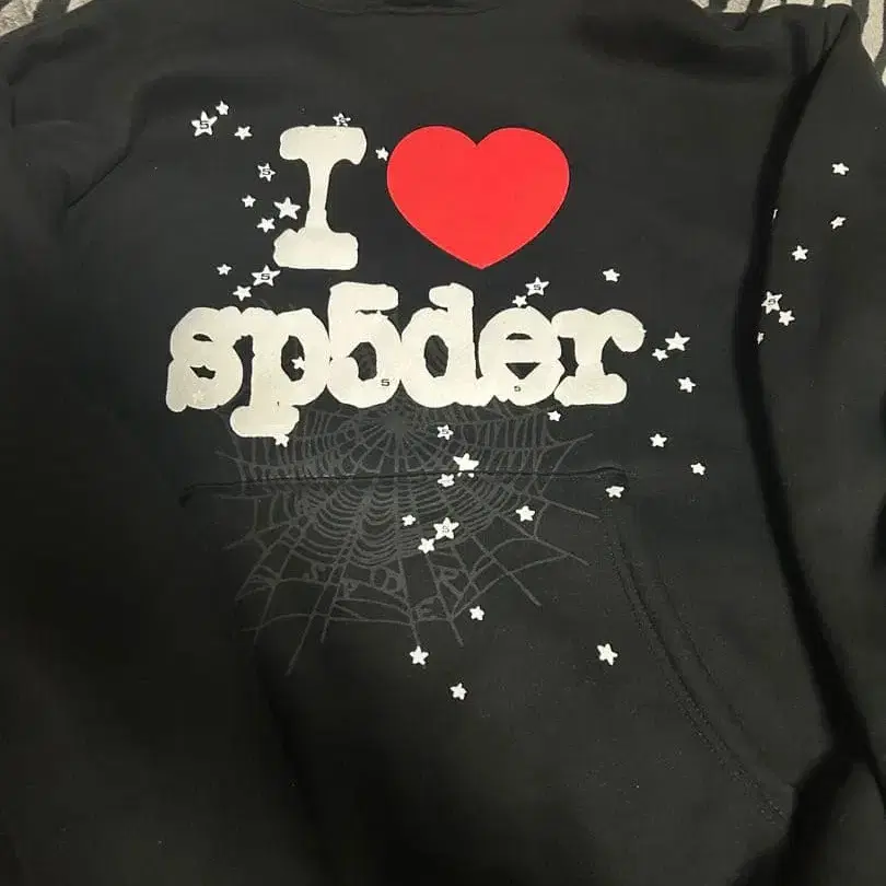 I Love sp5der 후드 부착 후드티 블랙