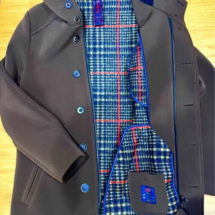 • BOB 밥 후디드 하프 코트 본딩 소재 안감 체크 48 사이즈