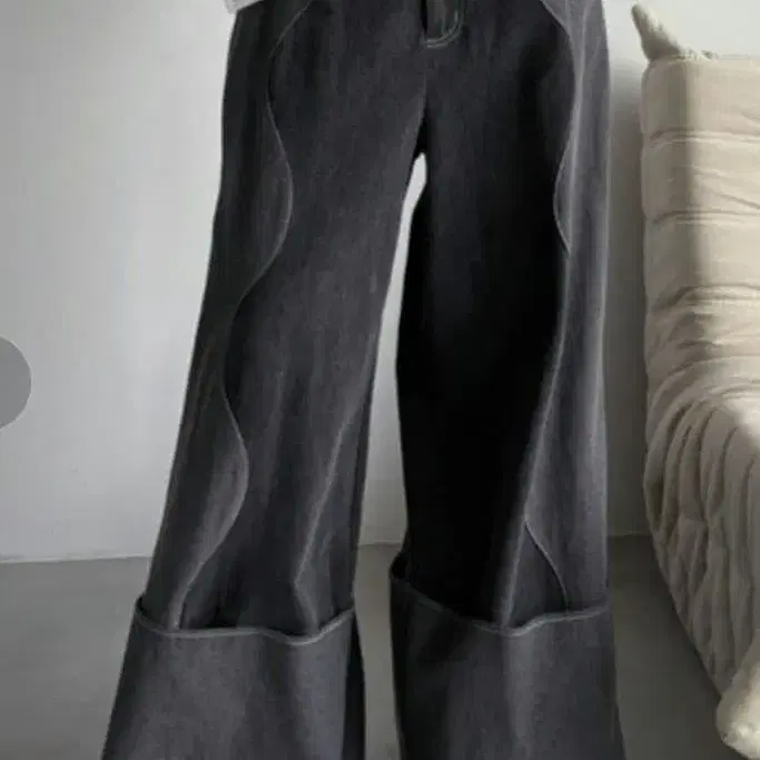 자동 번역되었어요. 원문보기VACANCY의 배색 웨이브 와이드 데님 블랙입니다.