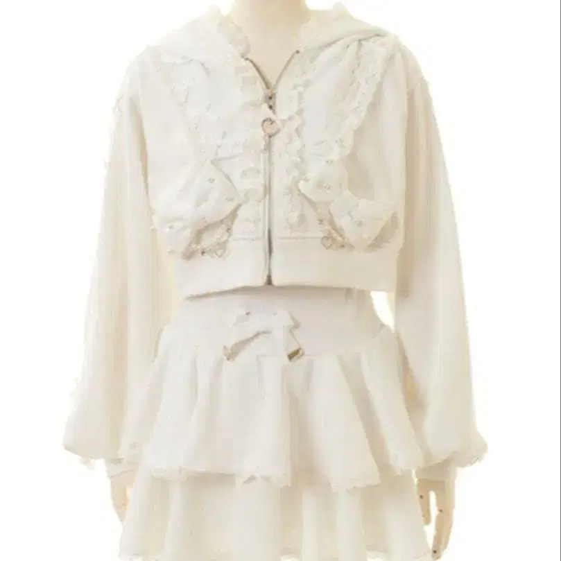 리즈리사 리본 후드티 셋업 화이트