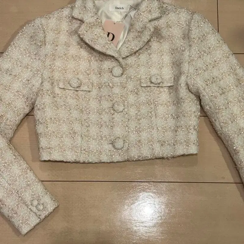 택 포함 다리치 숏 트위드 자켓 라메 택 포함 베이지