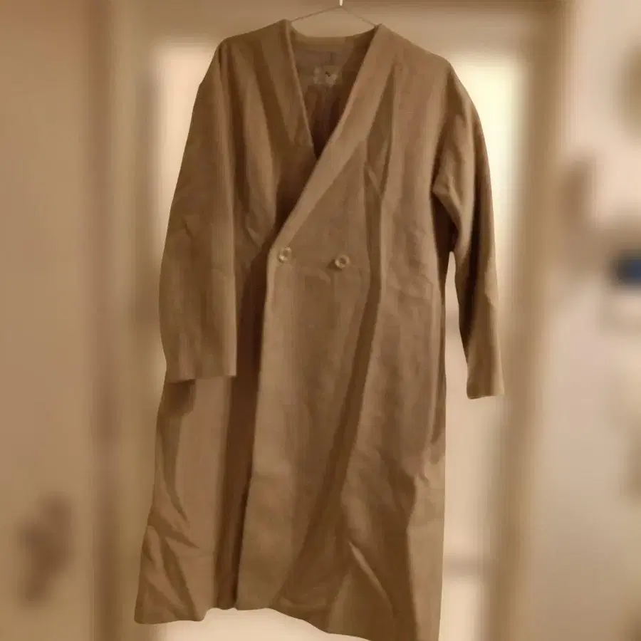베이지 더블 브레스트 롱 코트 체스터 코트