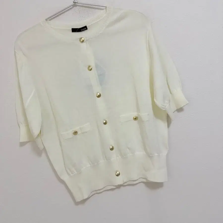 라난 [세탁 가능 시원한] 골드톤 버튼 5부 소매 니트 가디건