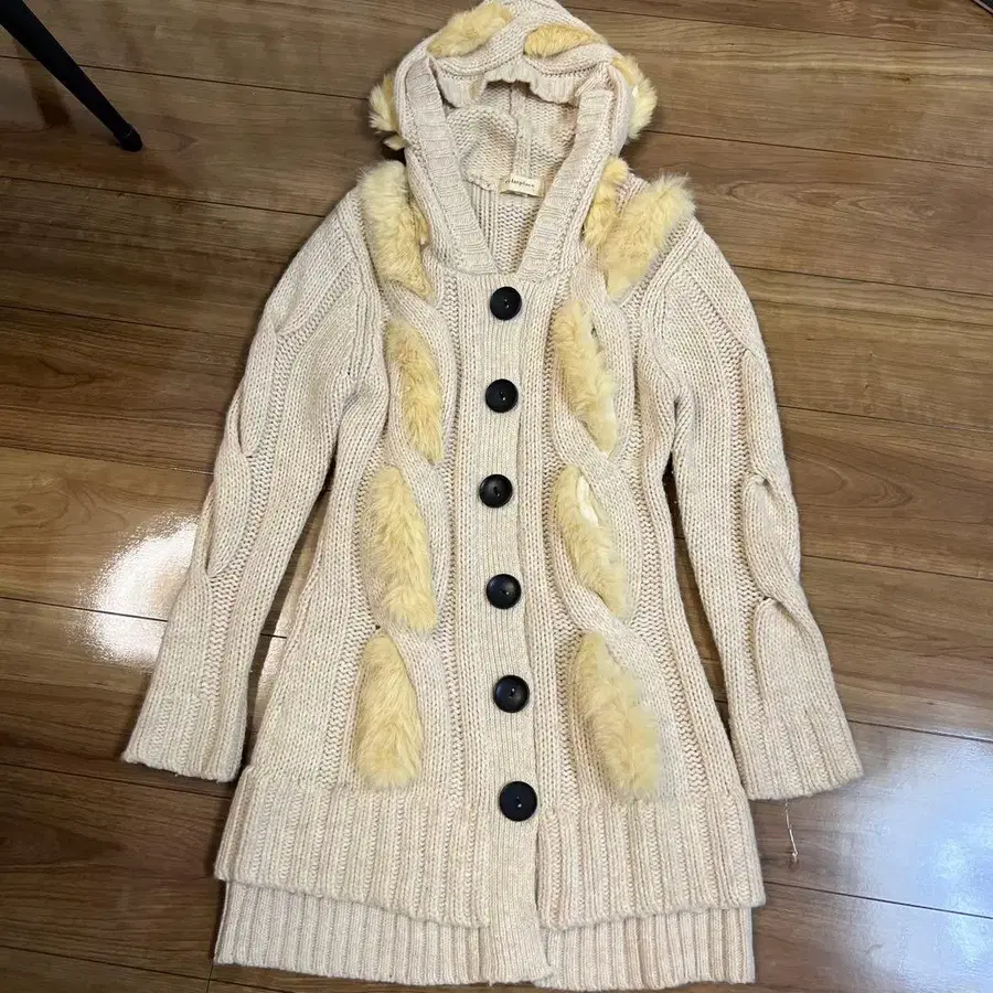 eclatplace 00's Y2K 짜임 퍼 니트 롱 가디건