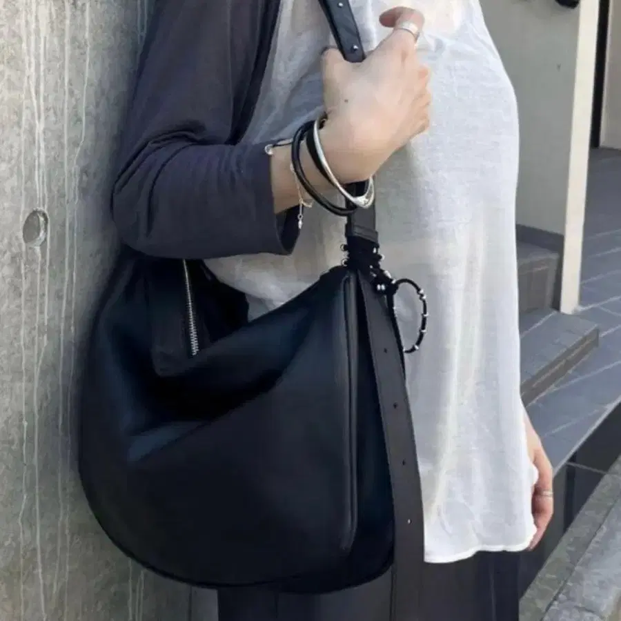 ear 스와로 바닥 숄더백 이아파피요네 블랙 천연 가죽 가죽
